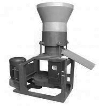zka z trawy, itp.) dla ptaków, ryb i bydła. Proces technologiczny granulatorа polega na wykrawania surowców za pomocą wałków prasujących poprzez otwory promieniowe kołowej matrycy. Granulator także wykorzystują się dla produkcji granuł (peletów), które składają się ze słomy, trocin, odpadów drzewnych lub innych produktów przetwarzania zbóż. Do zalet granulatorа można zaliczyć poniższe: stosuje się dla otrzmania granuł o średnicy od 6 mm do 14 mm, prostość konstrukcji, zrównoważone rozwiązanie wg kryterium objętości metalu, łatwości obsługi kosztem obracającej się kołowej matrycy z poziomą osią obracania i dwóch wałków, obracających się na nieporuszających osiach wewnątrz matrycy. Dzięki silniku elektrycznemu przeprowadza się uruchomienie matrycy i obrót wałków prasujących.